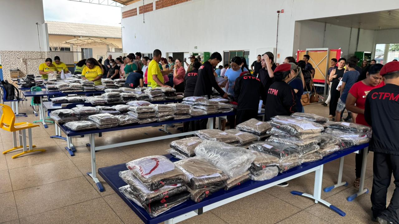 Com emenda de R$348 mil destinado pela Dra. Taíssa, famílias comemoram entrega de uniformes no CTPM X em Guajará-Mirim