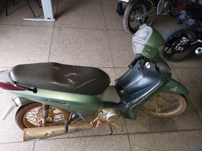 Já no período da tarde, por volta das 16h54, uma guarnição do Patamo localizou uma motoneta em outra casa abandonada, situada na Rua 310, no bairro Parque Industrial Tancredo Neves. Em meio à vegetação, foi encontrada uma Honda Biz 125 ES, de cor verde, escondida entre o mato, em circunstâncias que indicavam tentativa de ocultação. Durante a varredura, os policiais verificaram que a placa estava quebrada e próxima ao local onde o veículo havia sido ocultado. A motoneta apresentava ausência do retrovisor direito, carenagem dianteira danificada e sinais de ligação direta, indicando violação do sistema de ignição. Após consulta aos sistemas de segurança, foi confirmado que o veículo possuía registro ativo de roubo/furto.