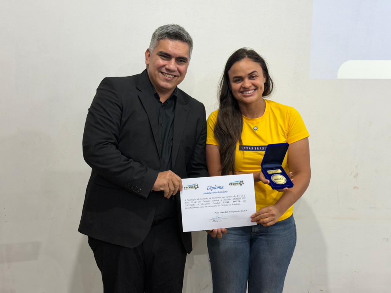 A deputada estadual Dra. Taíssa Sousa (Podemos) foi homenageada com a Medalha Mérito do Ciclismo, concedida pela Federação de Ciclismo  de Rondônia (FECRO), em reconhecimento à sua atuação contínua em apoio ao desenvolvimento do ciclismo no estado.