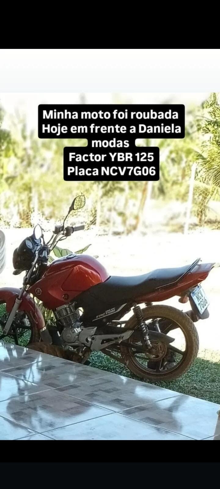 De acordo com informações, a vítima havia deixado o veículo motocicleta Yamaha Factor vermelha placa NCV7G06 estacionado em frente ao estabelecimento e, ao retornar, percebeu que a motocicleta não estava mais no local.