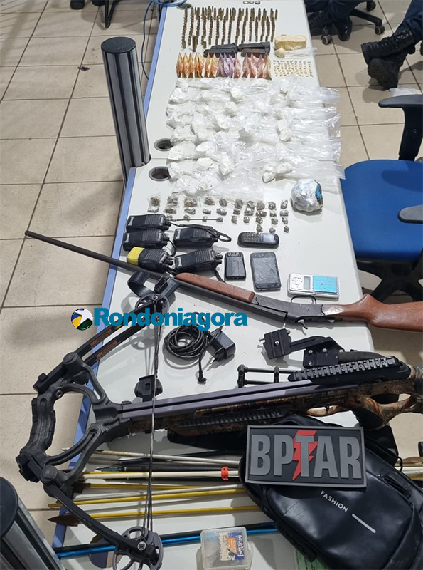 Ao todo, a polícia apreendeu 192 munições de diferentes calibres, incluindo 9mm, .38, .22, .380, .45, .25 e .36, além de quatro carregadores de pistola, uma espingarda calibre 36 e uma besta (balestra). Também foram recolhidas 71 pedras de crack, 33 porções de maconha, balanças de precisão e diversos equipamentos usados no preparo e comércio de drogas.